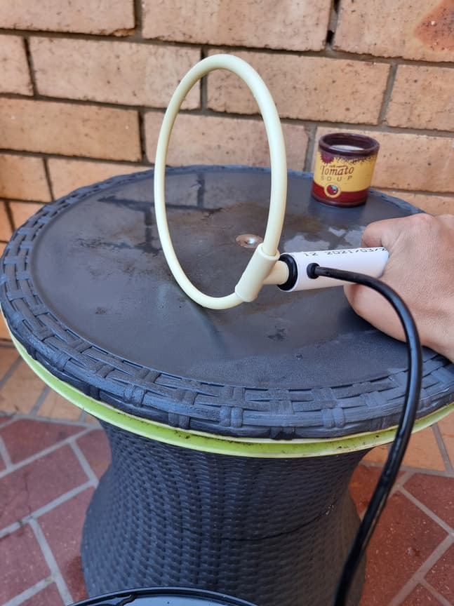 Das Blech schneide ich noch n bissl besser zurecht oder ersetzen es durch ein weisses. Ich hab das Gefühl das wird da zu heiss.... Dann wird das Ganze noch Cyclonproof verschraubt. Rollen unterm Tisch wären auch noch geil.