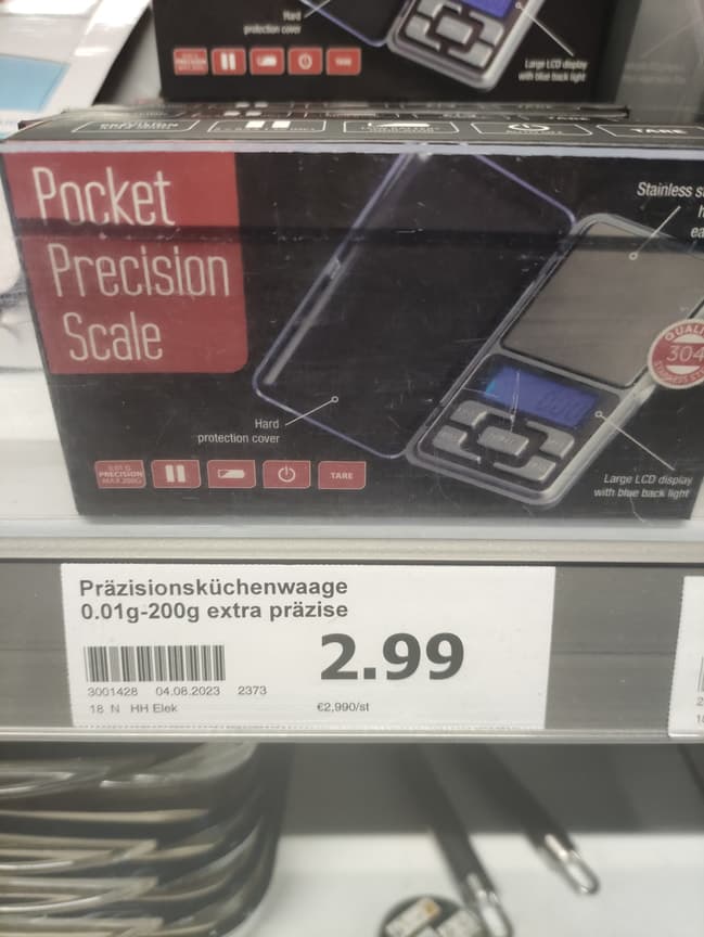 Die Feinwaage hab ich da aber noch nicht gesehen, wenn ich sie sehe hol ich mir mal eine und teste die