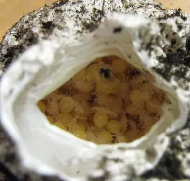 also erst mal ... es gibt Arten, das hast du in einem Kokon 1000 Jungspinnen und dann gibt es Arten, das sind nur ganz wenige drin.