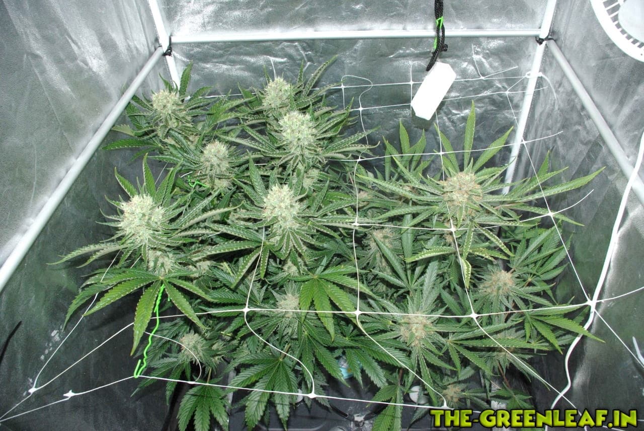 BT 58 und sind mit ca. 70 Tagen angegeben. Die Sterling Haze rechts ist mit die kleinste Pflanze, die ich bis jetzt gegrowt habe und ich hatte richtig Bedenken wegen der Höhe! Links steht die Amnesia und schwillt und schwillt! :D Ab nun wird gespült!