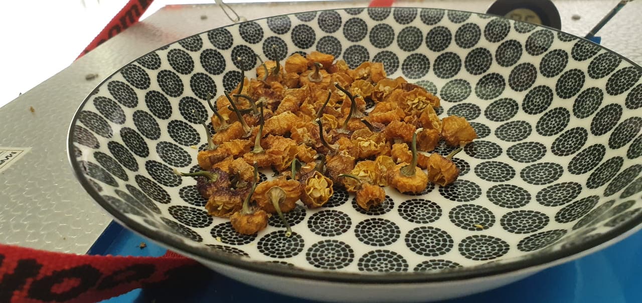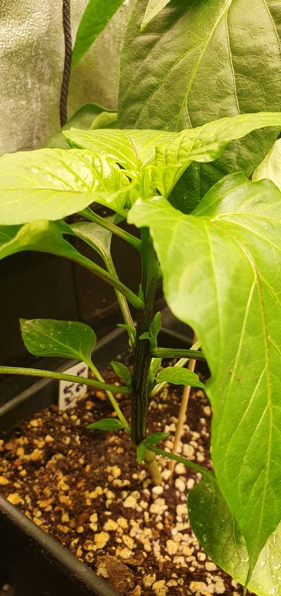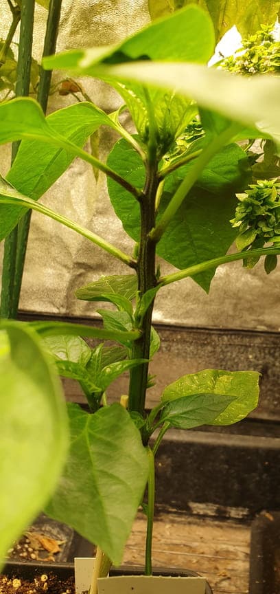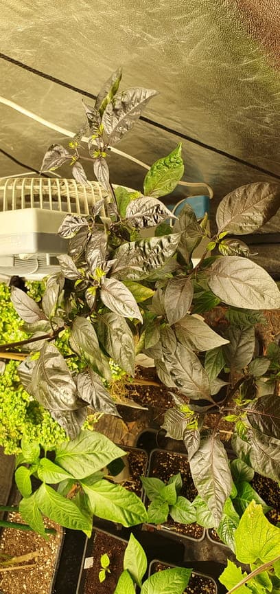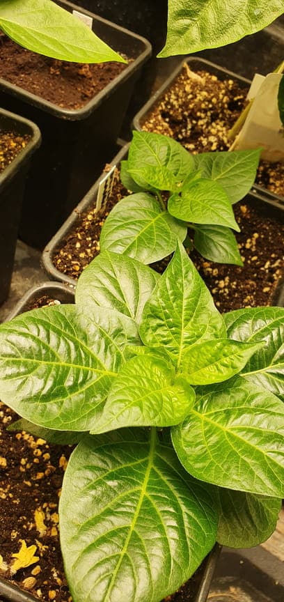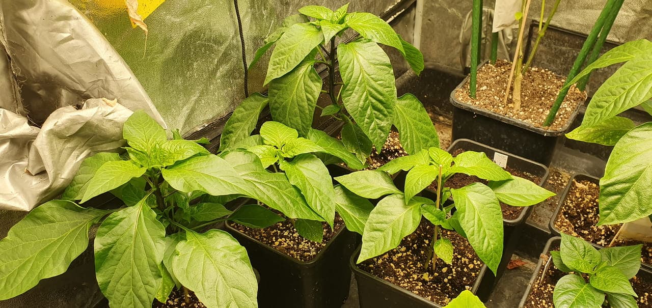 Besteht aus folgenden Sorten: Anaheim, Big Jim, Biquinho amarelo (die mit den runden Blättern), und einer vereinzelten Carolina Reaper Chocolate (die ganz winzige)