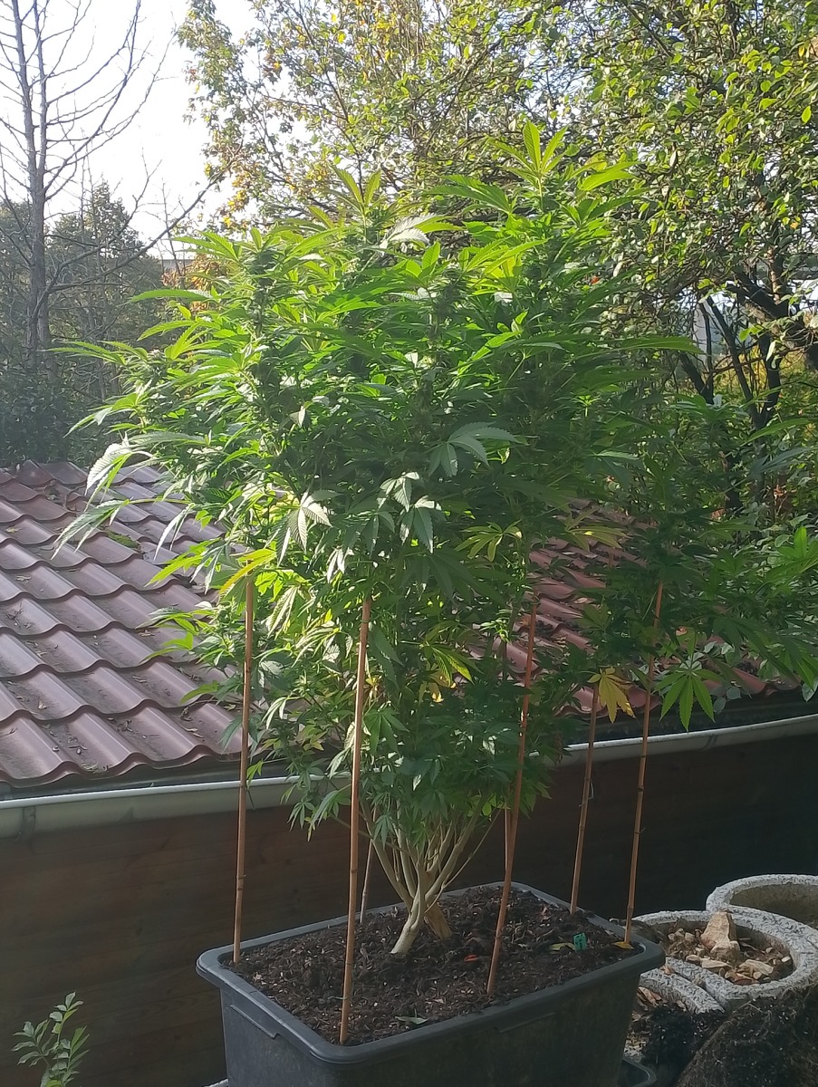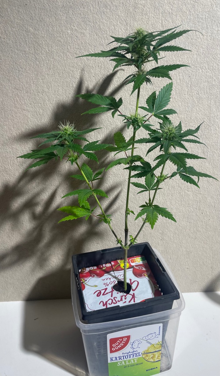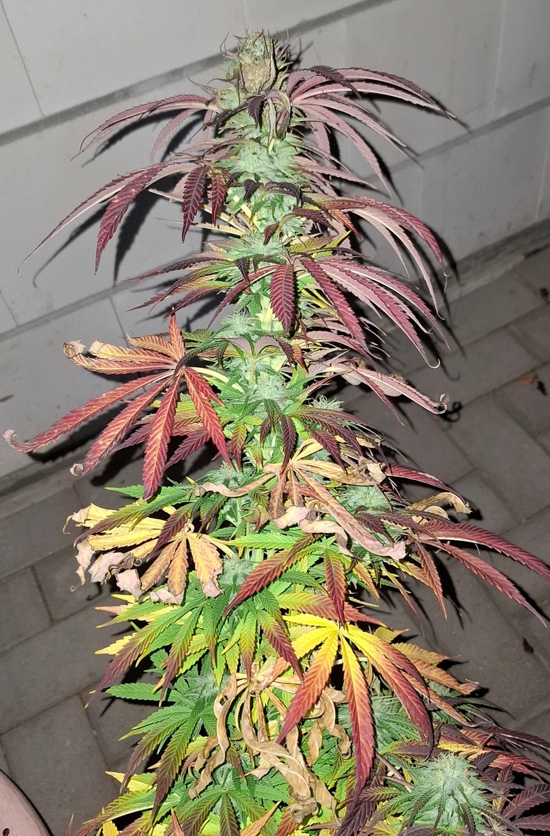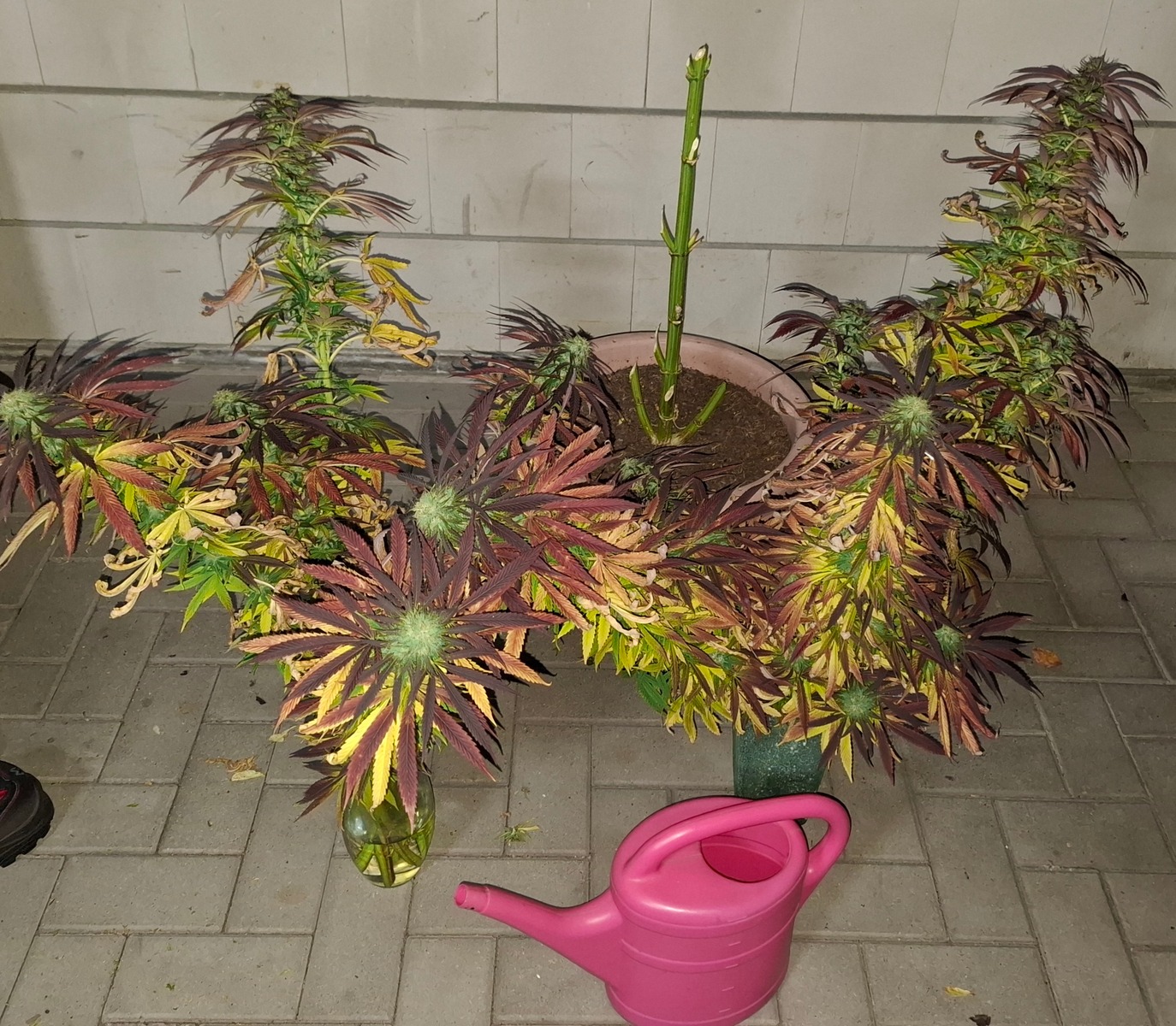 Das ist die Genetik, die ich auf die Estrichmatten gespannt hab. Da ist sogar ein Hauch Purple drin.