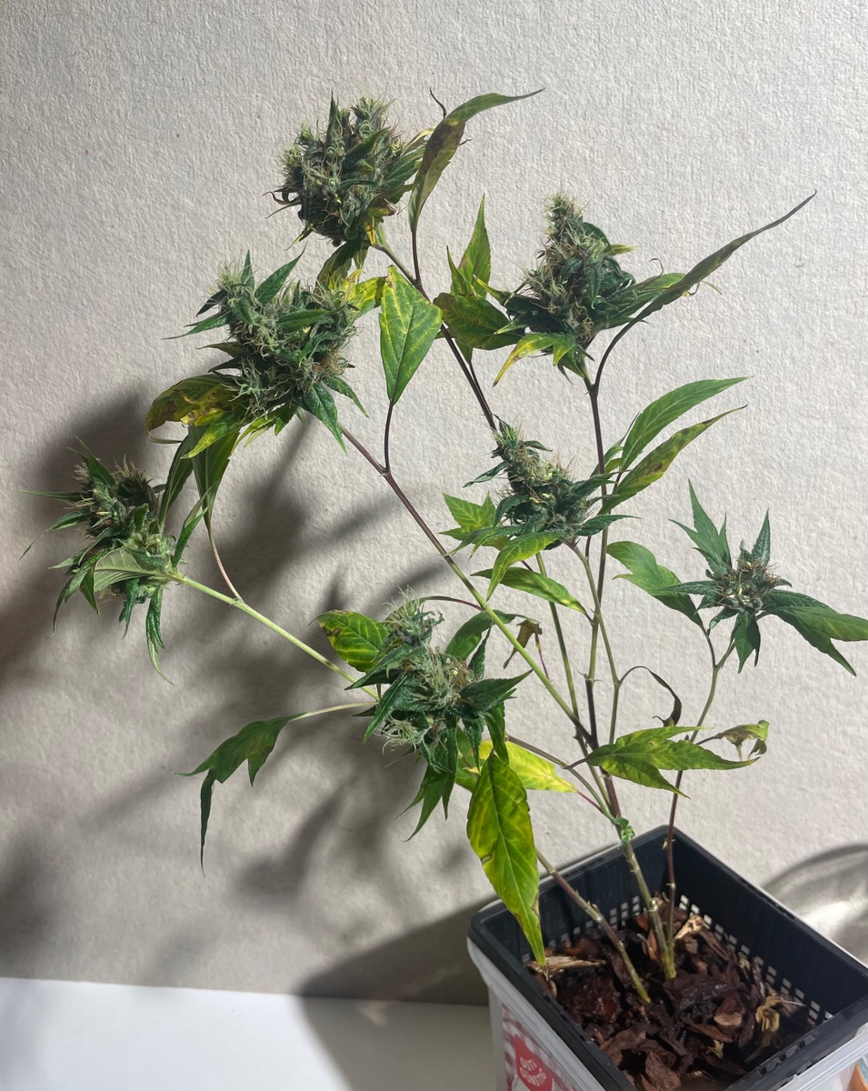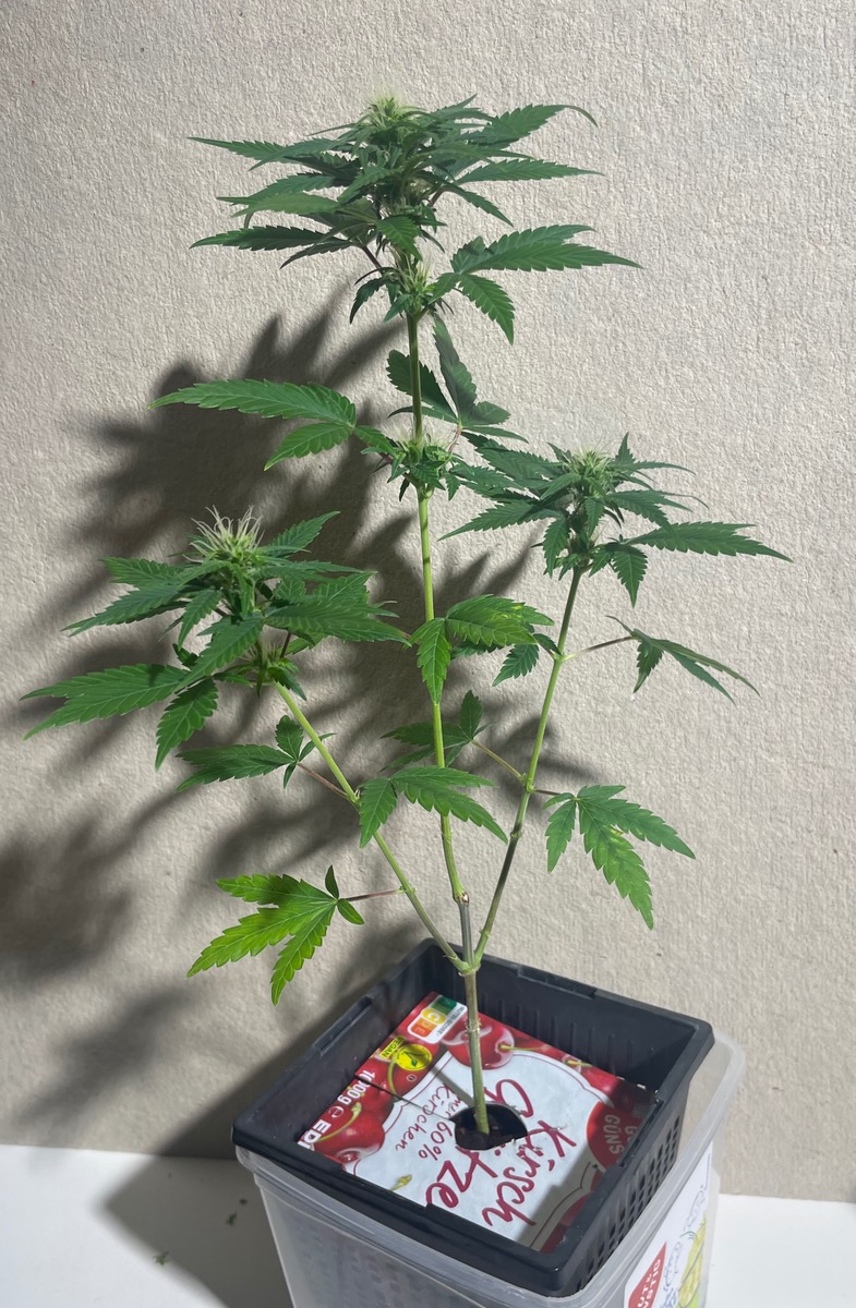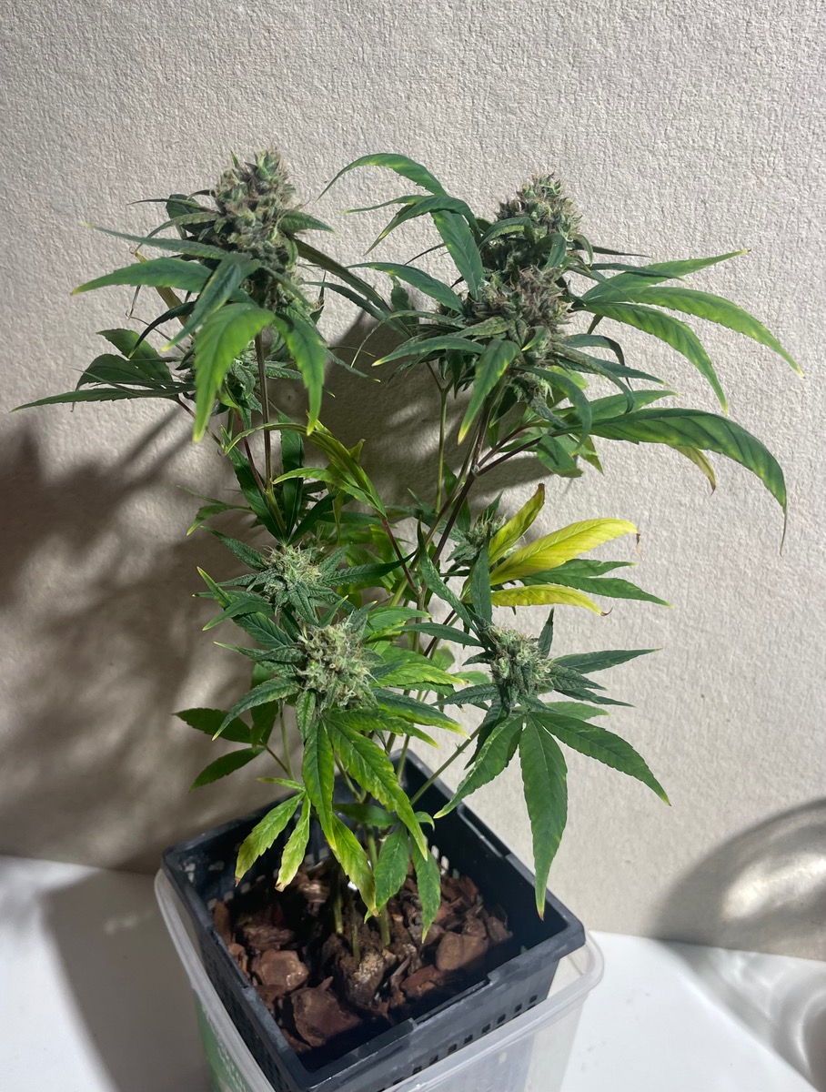 Das ist die Genetik, die ich auf die Estrichmatten gespannt hab. Da ist sogar ein Hauch Purple drin.