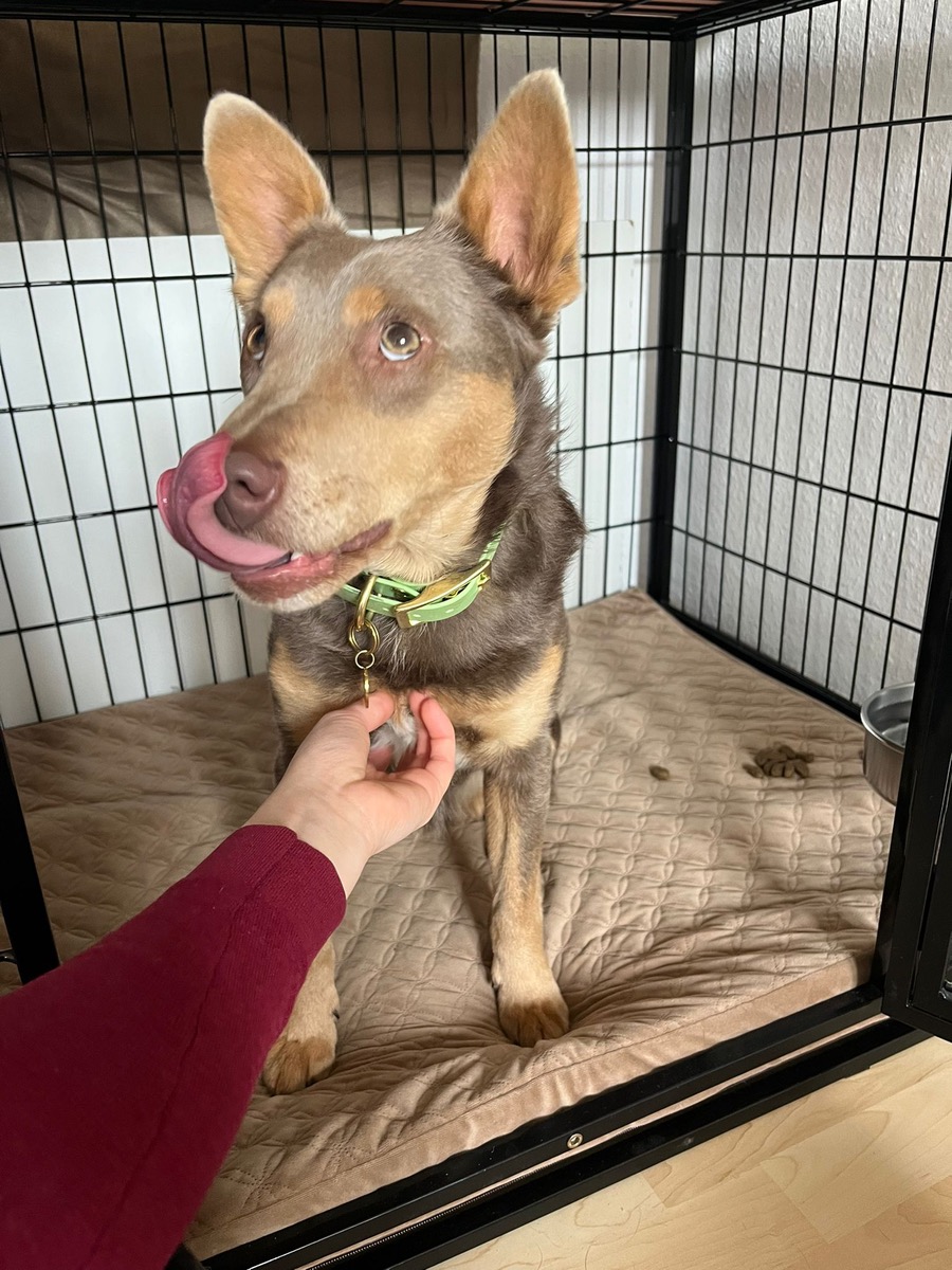 Das ist Dante. Den lerne ich am Freitag kennen. 🥰🥰 ein Australian Kelpie. 🤩 als „Begleithundbausatz“