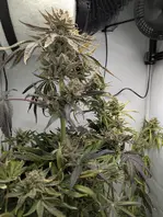 Hatte gedacht die wird bis Xmas aber eher noch paar Wochen mehr. Die Mimosa Auto hatte einen miesen Start und wird vielleicht nicht DEN Ertrag liefern, aber ansonsten sieht sie nicht ungesund aus. Untenrum hat die ziemlich große Segel ausgebildet aber die Blüte hat nur sehr schmale 🤷🏻‍♂️ Freu mich jedenfalls daß sie nicht kompostiert werden musste 👍🙏💚🦎💚👽💨💨💨🛸