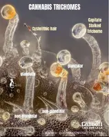 Die Capitate-stalked Trichome (kopfsegge-gestielte Trichome) sind zweifellos die Superstars unter den Cannabis Trichomen. Mit ihrer charakteristischen pilzähnlichen Form und beeindruckenden Größe von 200-300 Mikrometer Höhe (0,2-0,3 mm) sind sie die einzigen Trichome, die mit bloßem Auge sichtbar sind.