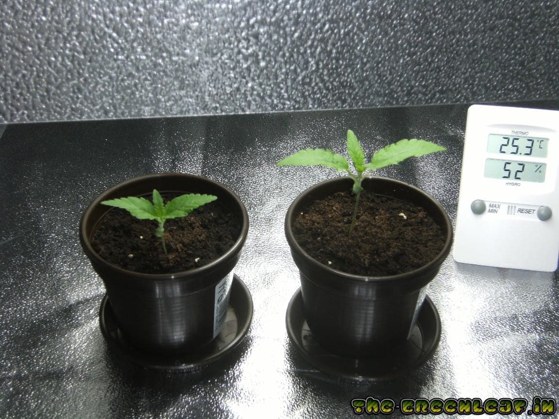Die Seeds sind alle 3 nach zwei Tagen gekeimt und sind am 6.8. in die Erde gekommen.Leider hab ich eins von den 3 Mädels etwas zu sehr befeuchtet und sie ist "abgesoffen".Nach zwei Tagen unter [lexicon]Licht[/lexicon] konnte ich den Keimling nur noch tot aus der Erde bergen ;(