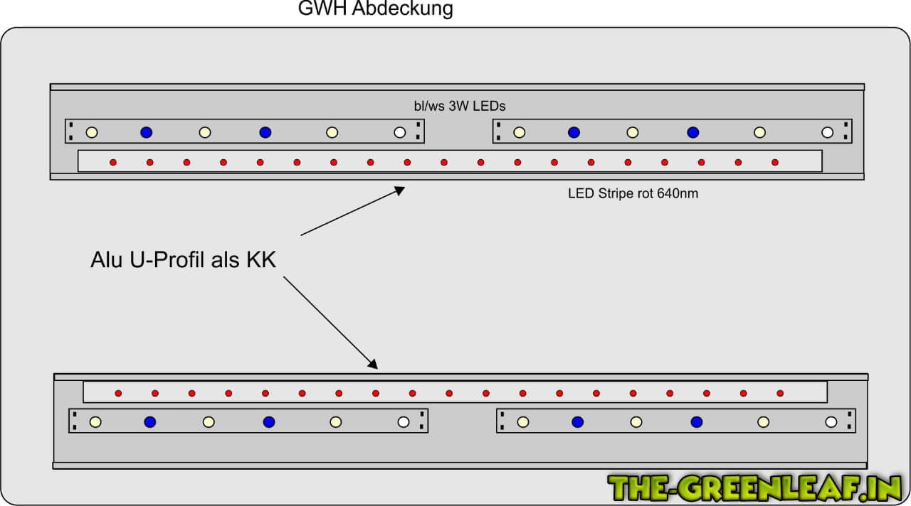 und zuschaltbaren roten LED Stripes(640nm) mit ca. 2x 2W ,Montiert.