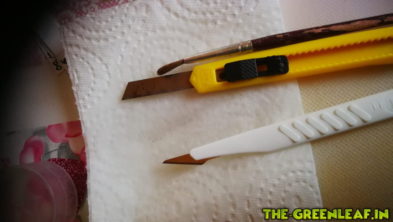 Werkzeuge bereitlegen ( Skalpell & Schere für die Blätter ).