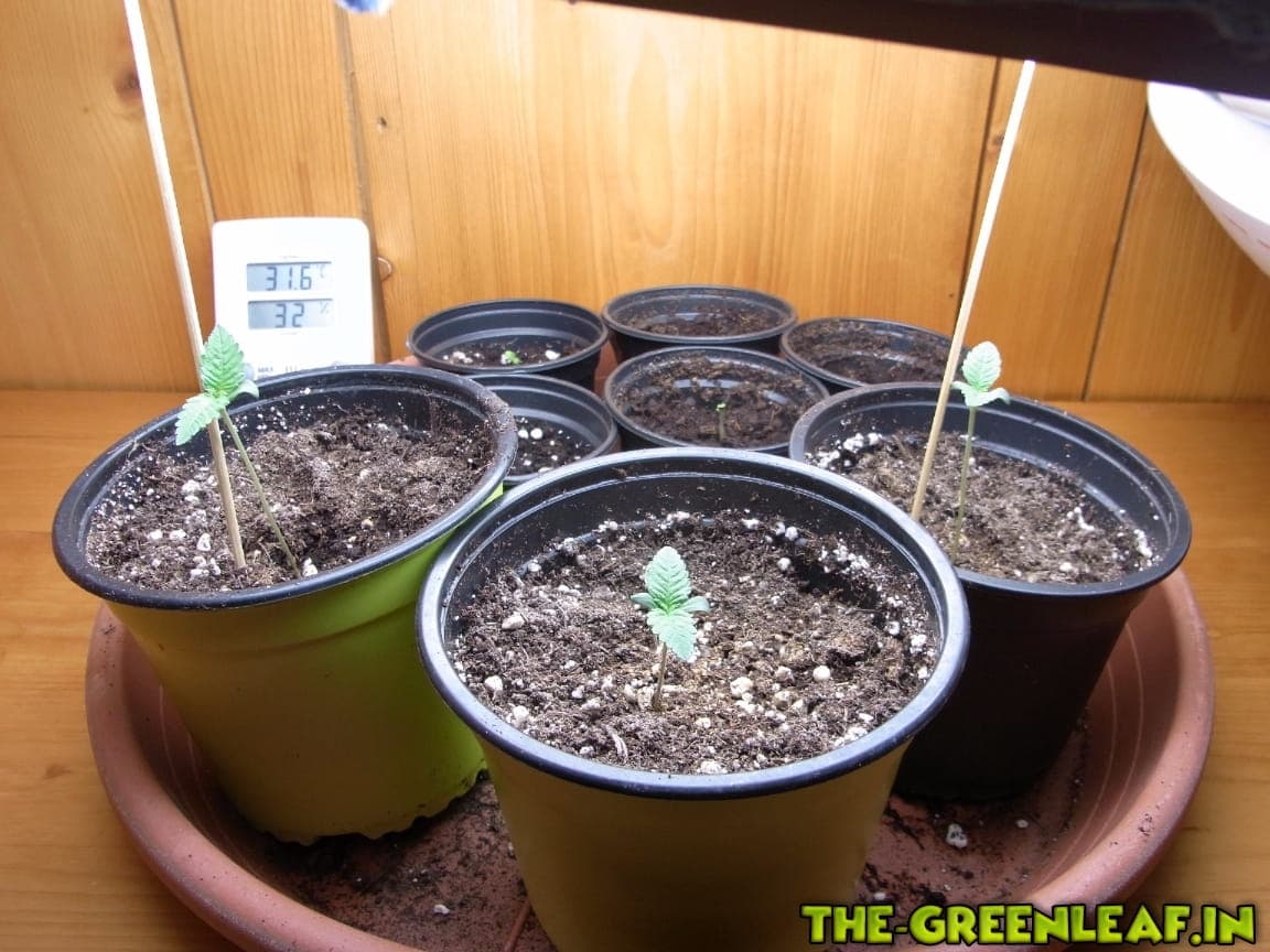So die kleinen sind alle 3 heute ans Tageslicht gekommen :) hatte keine anzucht erde zuhause leider auch kein Lightmix mehr. Jetzt musst ich sie in zuvor gespüllte BioBizz all mix Erde stecken hoff das fällt mir nicht aufn Kopf aber sollt passen :) stehen im Moment unter 2x 36w Philips LSR 4000 Kelvin was ursprünglich mal ne Lampe für meine Winterdepression waren :D bin drauf gekommen hilft mehr wenn ich darunter Gras züchte und das dann rauche :thumbsup: (ganz geil weil die nen Dimmer mit bei habe)