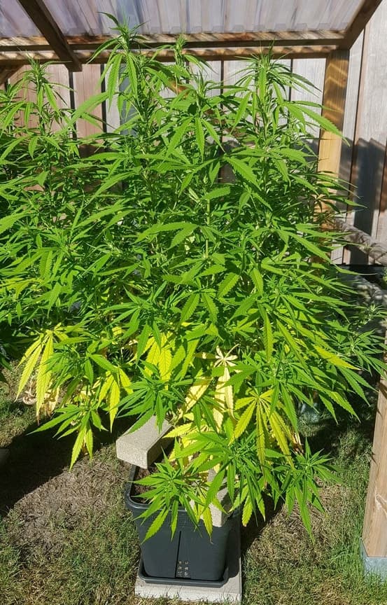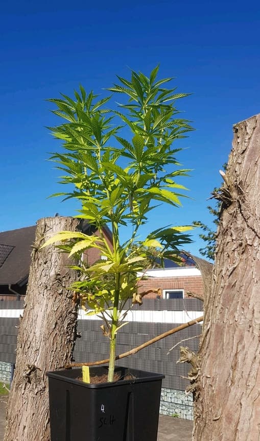 Ich würde sagen, Kalium- und Phosphormangel. Auf dem 1. Bild, die gelben Blätter auf dem Saum der rechten Pflanze.