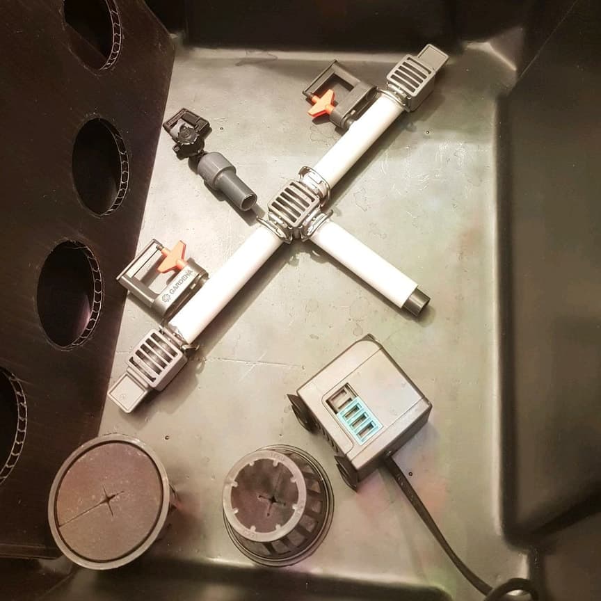 Ich habe 2 Sprinkler genommen weil der Sprühkreis ( sind ja dann auch 2 ) besser ist. Außerdem ist im Falle eines Ausfalls der eine Sprinkler auch noch stark genug um den ganzen Bottich zu beregnen 🤣👍