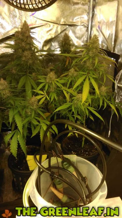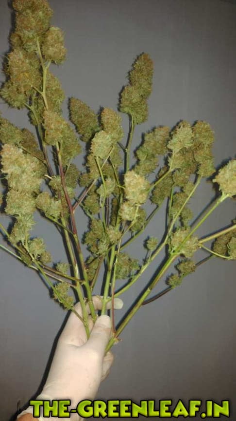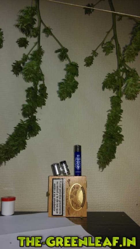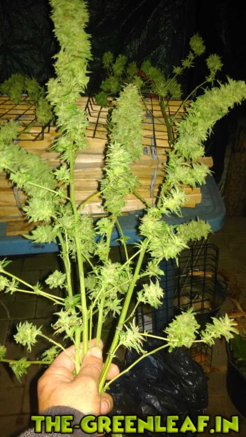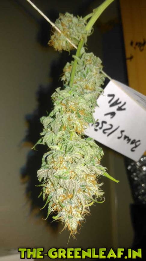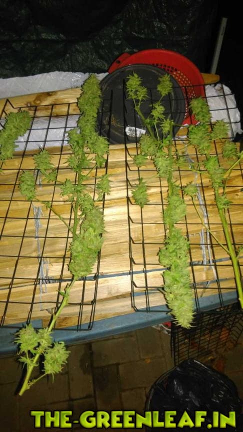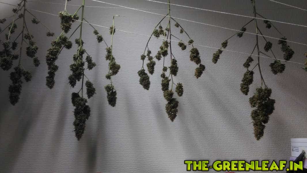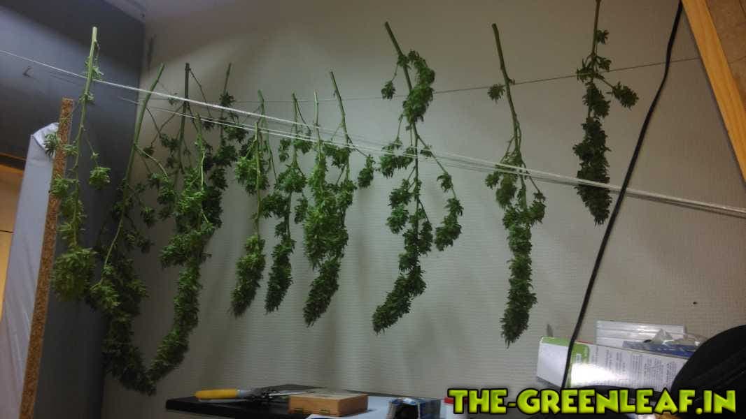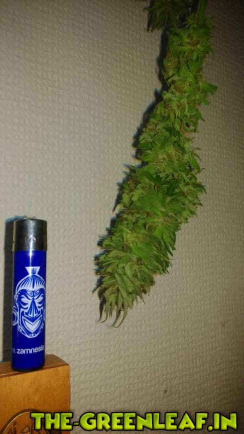 Echt gutes Blüte/Blatt-Verhältniss, nur paar größere Blätter abgezupft, und der Rest kann gut noch genutzt werden. Selbst die noch dran gebliebenen Blätter sind alle mit Harz besetzt und kommen in den Kühler für Öl oder Gumby.