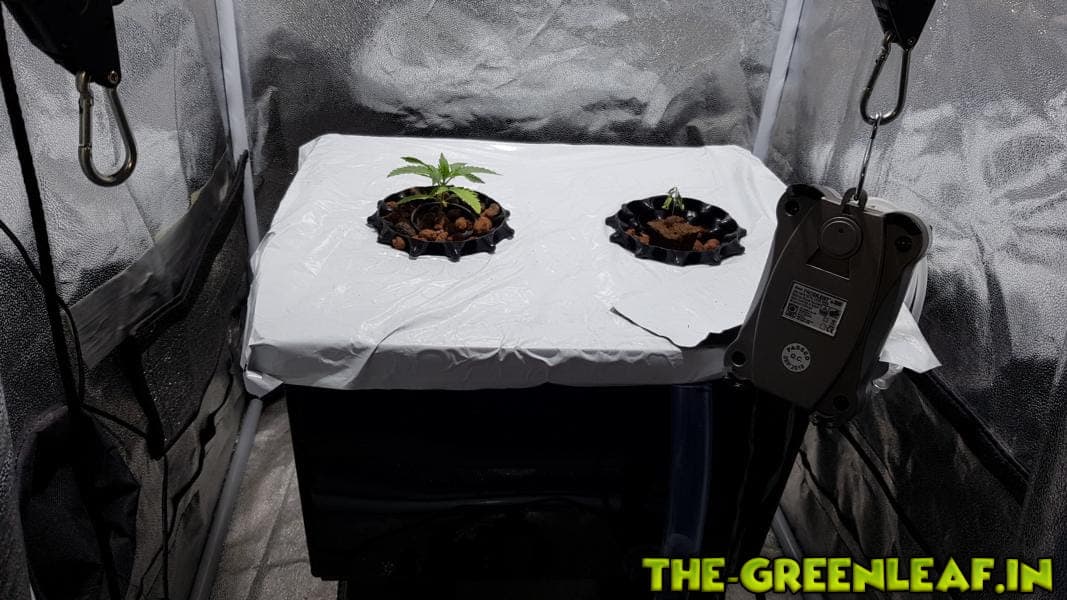 DWC-Twin-Container (in total 40 Liter, durch 1 Liter Airpot Nutzung ca. 15 Liter NL im Tank