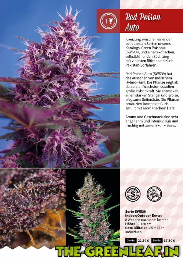 Our Red Family for now is comprised only of autoflowering strains. But our R&D department is working to do everything possible to get a photoperiod-dependent strain that also features a high percentage of chances of producing purple flowers.