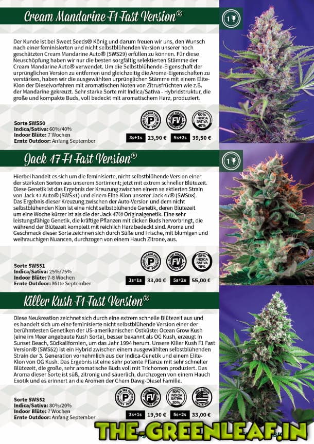 Auf eurer Webseite habe ich ein wenig gestöbert und bin auf die Jack 47 F1 Fast Version gestoßen. Gibt es Unterschiede im Geschmack, Größe der Blüten, Krankheitsanfälligkeit und Ernteertrag zu der Jack 47? Auch die Red Poison Auto würde mich als reguläre oder feminisierte Varietät sehr ansprechen.
