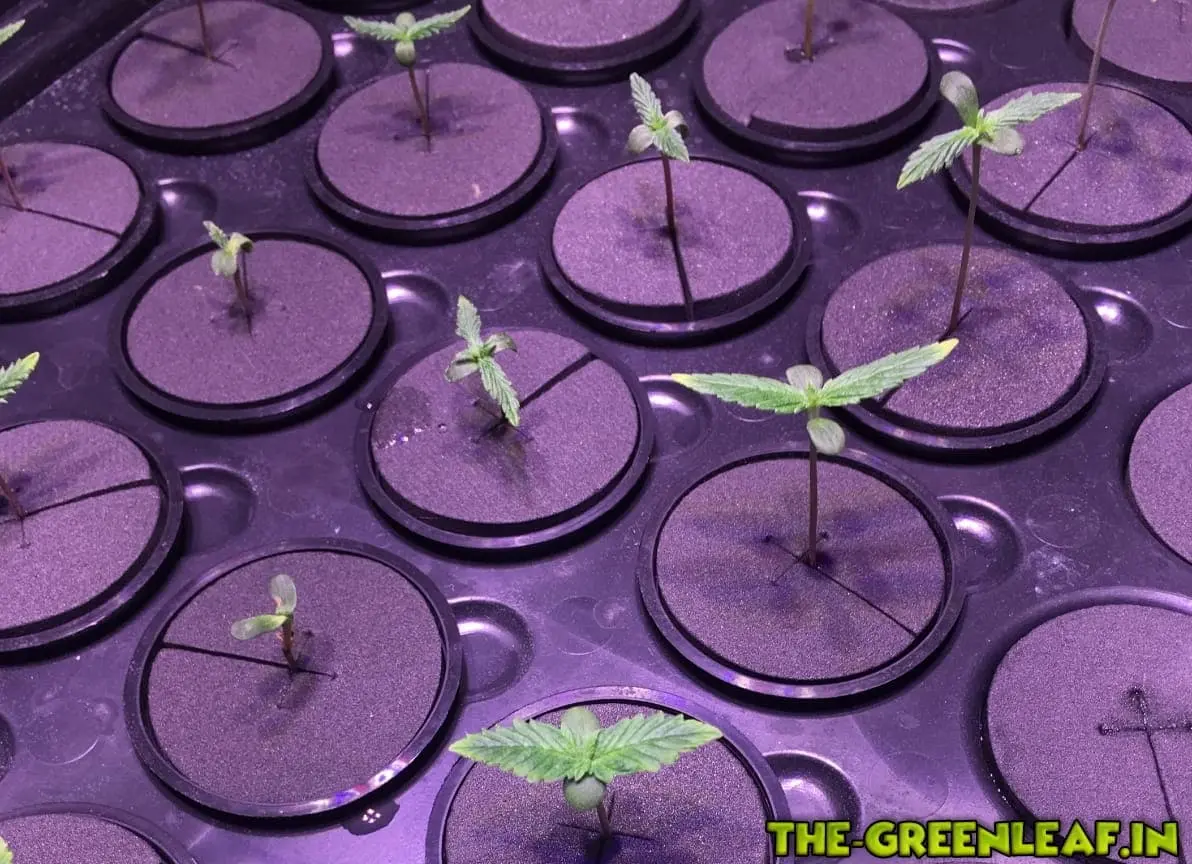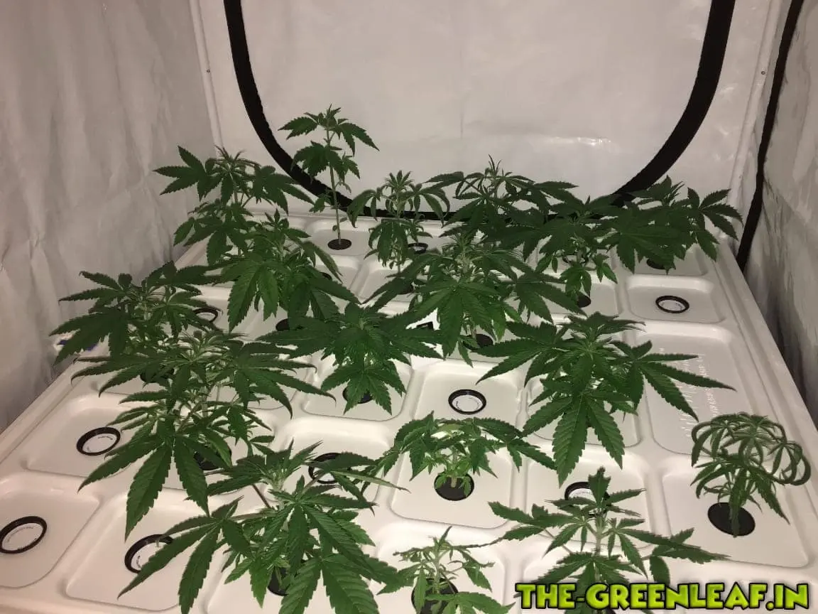 Um die bestellten neuen Samen nicht gleich beim ersten Grow zu verfeuern wollte ich erst mal Erfahrungen mit im Weed gefunden Samen sammeln. 40 Samen wurden in befeuchtetes Küchenpapier gelegt und zwischen Tellern zum keimen gebracht. Nach fünf Tagen als die Pfahlwurzel lang genug war, wurden 22 Babys in 5cm Netztöpfen mit Neopren-Ring ohne Substrat in den Propagator gesetzt. EC 0,7 PH 5,3; Beleuchtung 18/6 GC Bloom.![]()