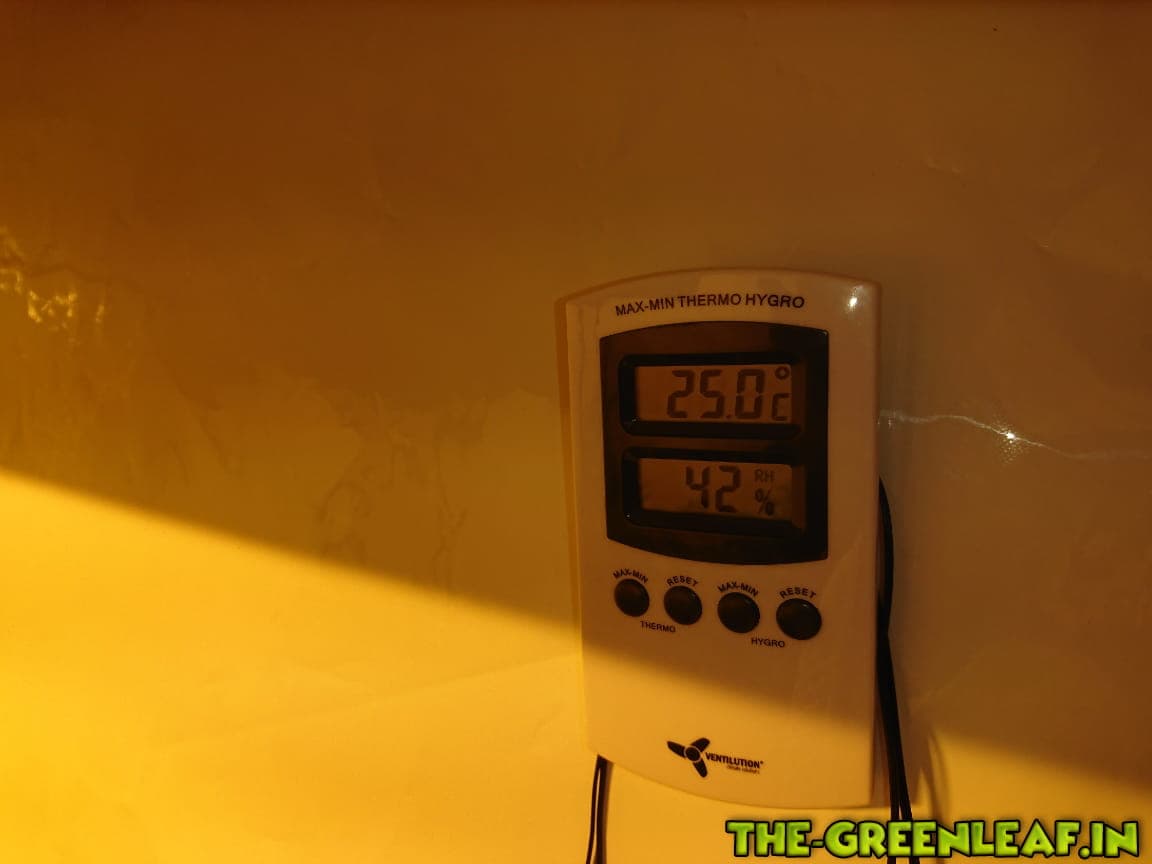die Werte im Raum auch , Thermometer im Topf Bereich teils etwas zu hoch >50% RLF
