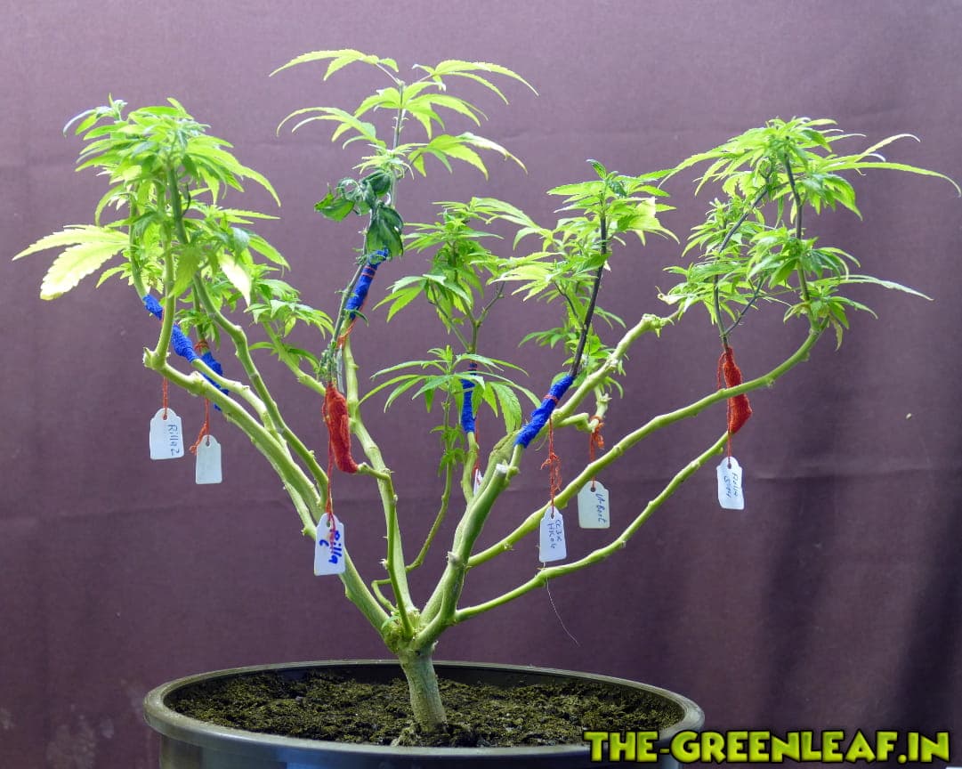 Dem erhöhten Stromverbrauch kann man die eingesparten Kosten für Samen+Selektion, sowie eine im Schnitt höhere (weil berechenbare) Ernte gegenüberstellen. Allerdings fallen diese Kosten auch an wenn nichts blüht und sollten darum erstrecht so gering wie möglich gehalten werden. Dieses und eine massive Ersparnis an Pflegeaufwand ggü der Haltung mehrerer Mütter könnte man erreichen, wenn mehrere Sorten an einer Pflanze wachsen würden, jeder Zweig eine eigene Sorte.