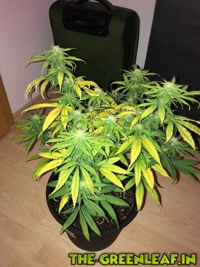 Ich bin jetzt in BT30 und eine meiner Mädls (Marie) macht zicken. Die Pflanze ist getoppt und 45cm groß. Sie bekommt von Tag zu Tag mehr gelbe Blätter mit braunen Flecken im mittleren Bereich. Die kleine steht in 9l Topf mit Allmixerde.