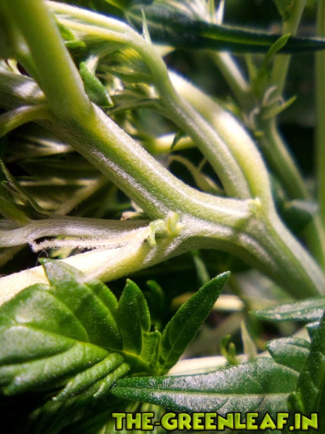 Eine Sativa ist nun eindeutig männlich (keine Fäden, nur Nüsse), 3 sind höchstwahrscheinlich weiblich (paar Fäden, noch keine Nüsse), 1 weiß noch gar nicht, was sie will.