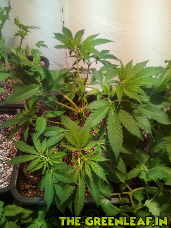 Die Mutti mit dem dünnsten Stamm kam heute ins Blütezelt, von den 4 im Vegiraum verbleibenden sind wohl 2 weiblich, 2 immer noch unentschieden und zeigen keine Vorblüte