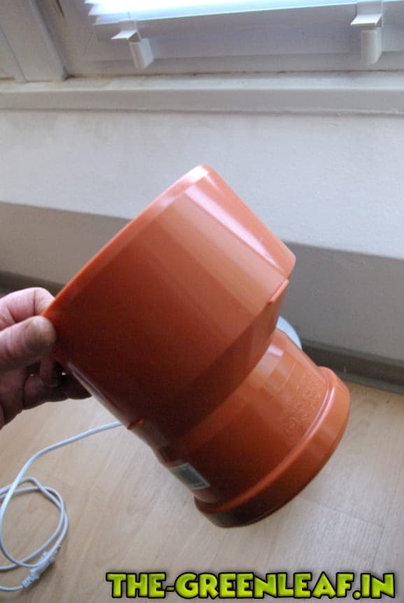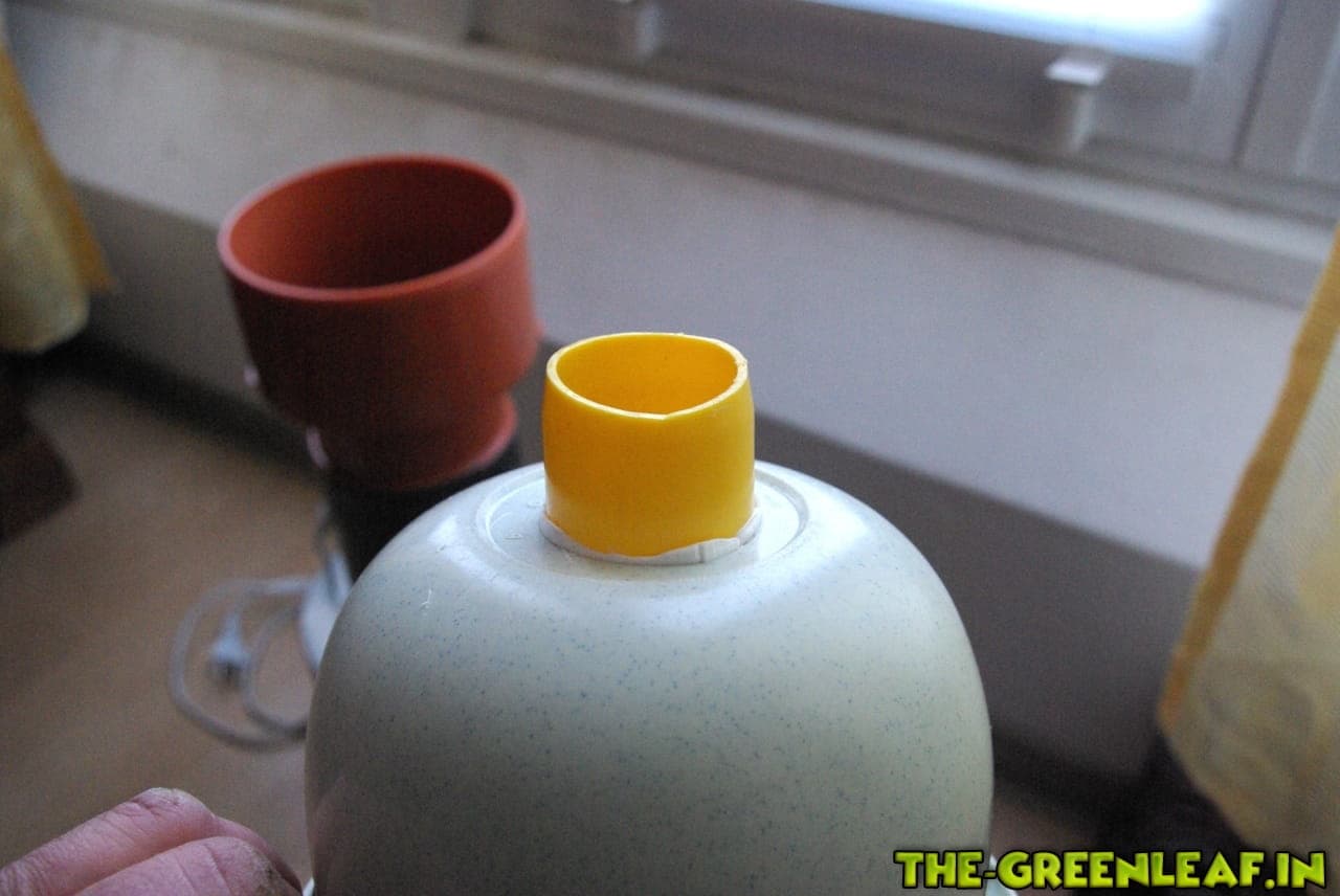 Nun brauchen wir einen Deckel oder etwas ähnliches, was oben auf das grössere Ende passt! Da Frauen allgemeinen Unmengen von Tupperkram für genau solche Fälle parat haben, war es hier die Tupperschüssel