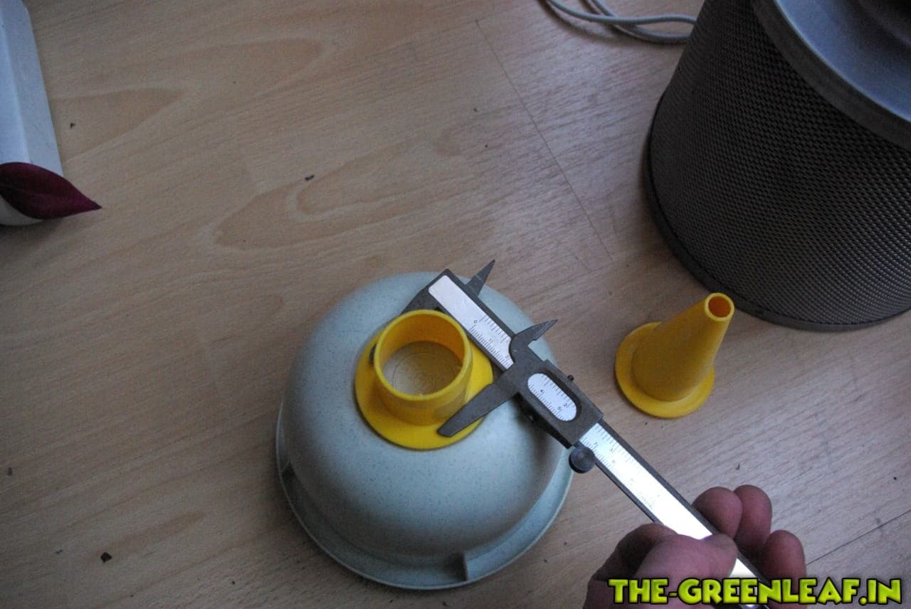 2 Tüllen ausmessen (sind von der Karpfenangelei! Spritztülle für Boiliegun) und jeweils in einen Plastikbecher (Mundstück) und die Schüssel ein entsprechendes Loch bohren.