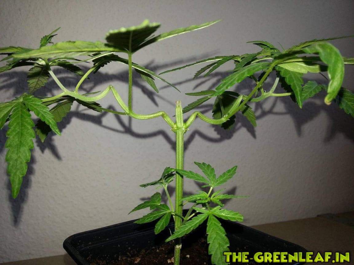 Die Pflanze wird konsequent darauf hin-trainiert sich nur um die Top Cola zu kümmern und das bedeutet sie wird untenrum rasiert und dazu geknickt.