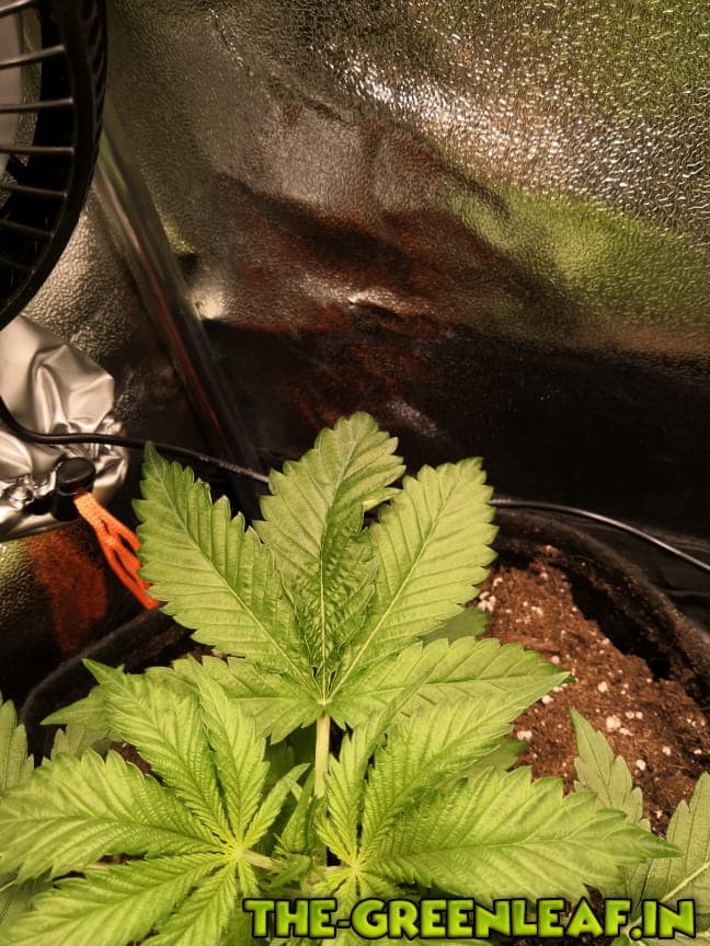 Laufen die beiden Umluftlüfter auf Stufe 2? Tanzen die Blätter sehr im Wind? Falls ja teste mal bitte entweder Stufe 1 (achte auf Temp/RLF) oder platziere die Lüfter etwas höher. Neue Blätter sollten dann gleichmäßiger mit weicheren Konturen wachsen (Bild 9).
