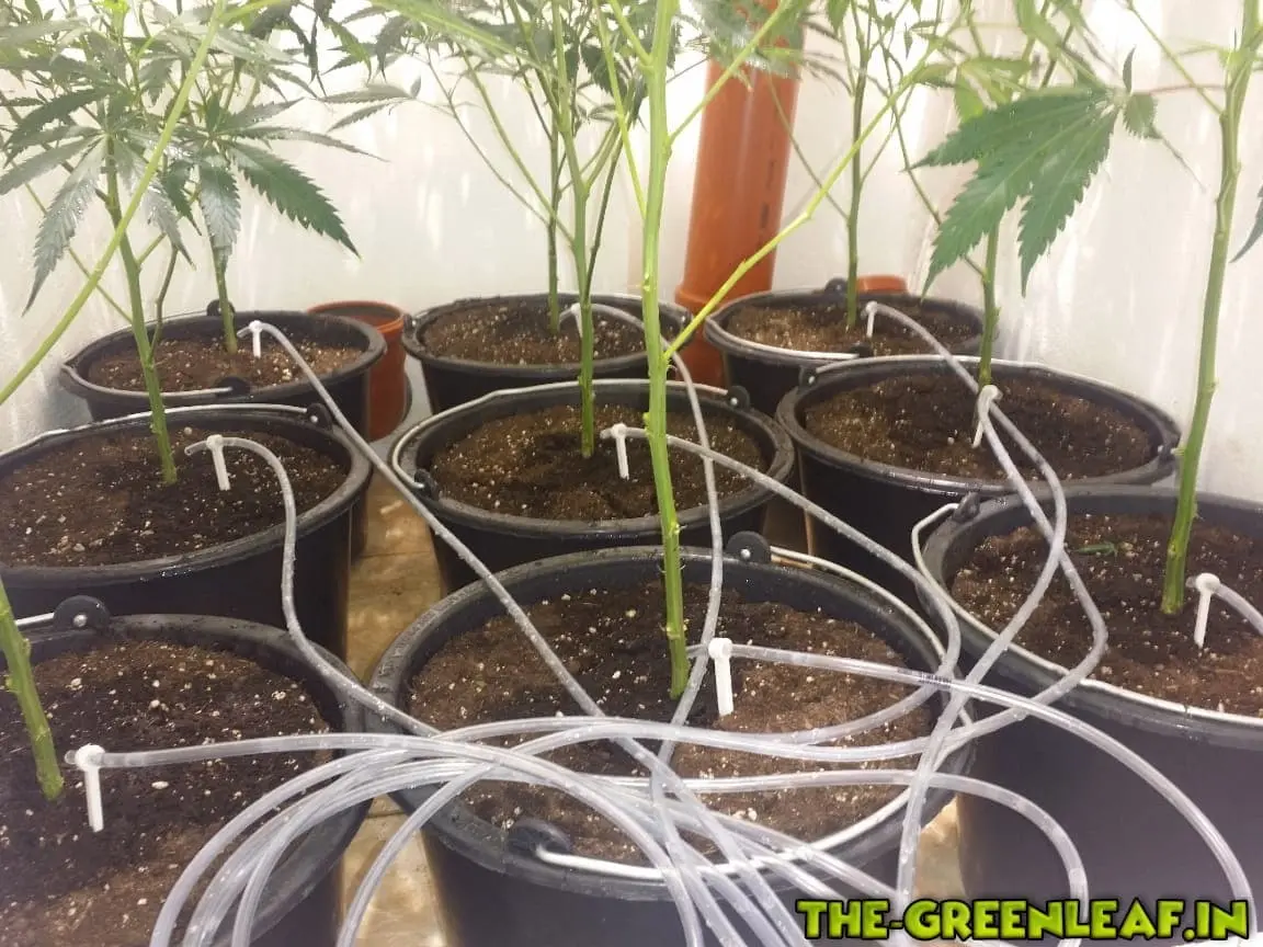 Die Schläuche zu den Töpfen müssen gleich lang sein, um eine gleichmäßige Bewässerung zu erreichen (Der Flusswiderstand variiert abhängig von der Schlauchlänge).