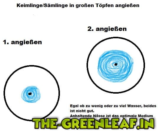 Bei den zwei neuen Samen die ich grade keimen lasse, soll ich die Erde nach eingraben der Samen gießen oder reicht die feuchtigkeit der Erde erst mal und wenn die Sämlinge das Köpfchen raus schauen lassen ein mal gießen bis aus dem Topf leicht Wasser unten raus kommt?