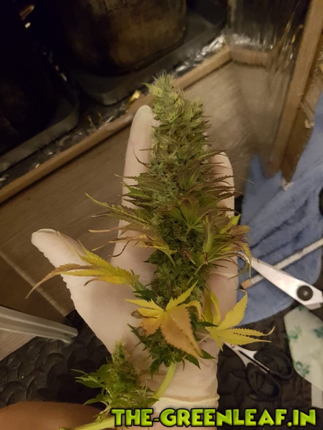 Nachdem ich vergangenen Sonntag die Trichome der Blüten unter dem mikroskop betrachtete und ein - meiner Meinung nach - gutes Verhältnis zwischen klaren, trüben und bernsteinfarbenen, oxidierten Trichromen verzeichnen konnte, entschied ich mich, recht spontan, zu ernten. Dies passte ferner ganz gut, da ich die zwei Tage zuvor nicht zuhause war und die Pflanze somit über 48h ungegossen war.