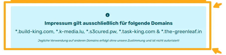 Um sogenanntes Impressum-Highjacking zu verhindern – also das unberechtigte Verlinken oder Kopieren unseres Impressums durch Dritte – wurden alle relevanten Domains direkt im Impressum unserer Firma vermerkt. Dadurch wird sichergestellt, dass unser Impressum nicht einfach von Fremdanbietern verlinkt oder missbraucht werden kann, da die Domainzugehörigkeit klar ersichtlich ist.