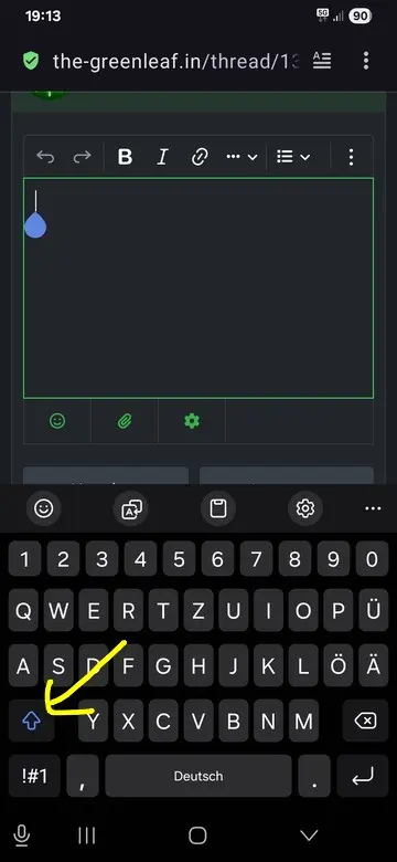 - Am Handy: GROSSSCHREIBEN GEDRÜCKT HALTEN + ENTER = nur neue Zeile