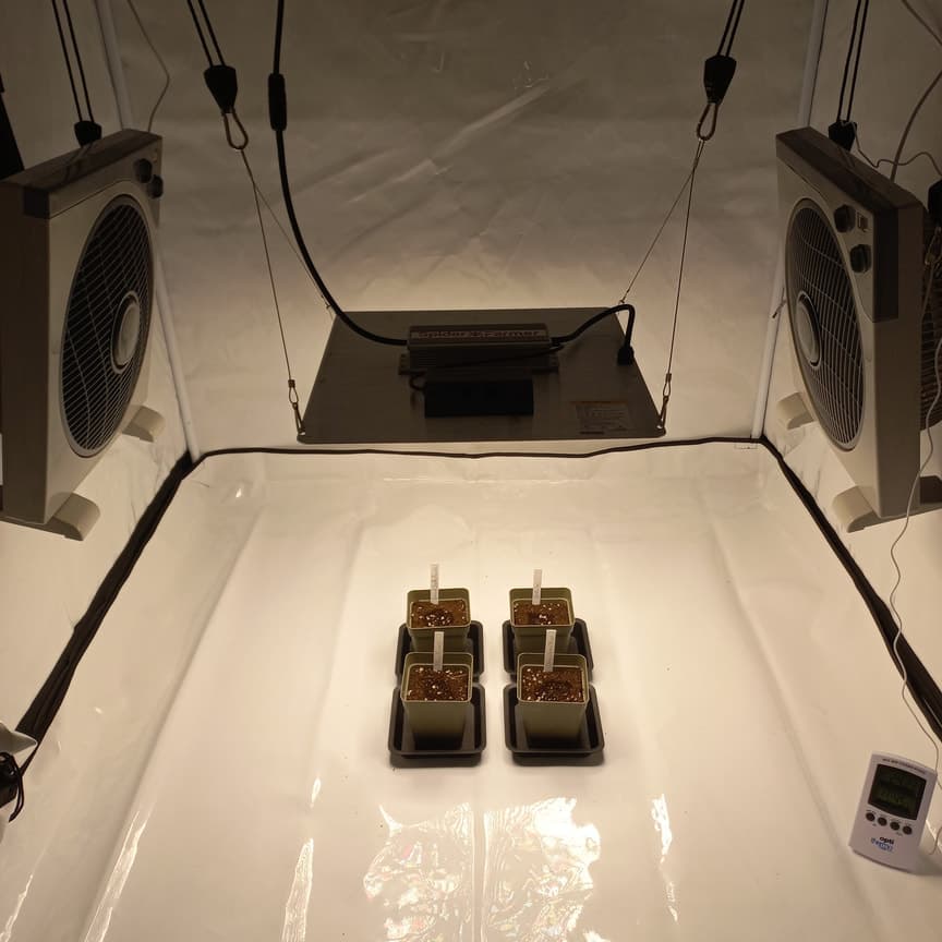 für die Umluft sind aktuell 2 EC Ventis von Spiderfarmer im Einsatz, auf Stufe 2 von 8 oder so