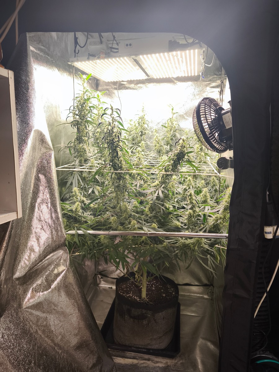 Gestern wurde mal ordentlich entlaubt und das Licht aufgedreht.die ist jetzt sehr schnell in blüte gegangen.da kamen schon nach Ner Woche auf 12/12 die ersten Blüten ansätze
