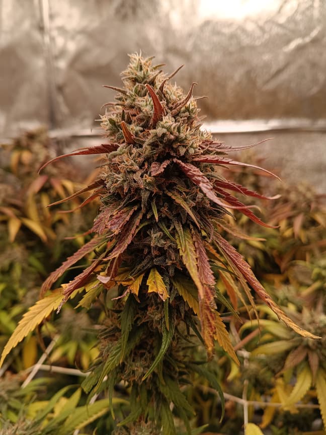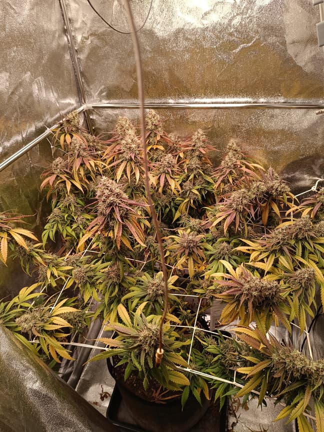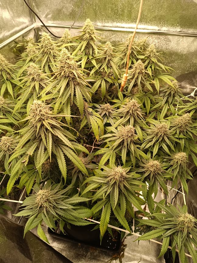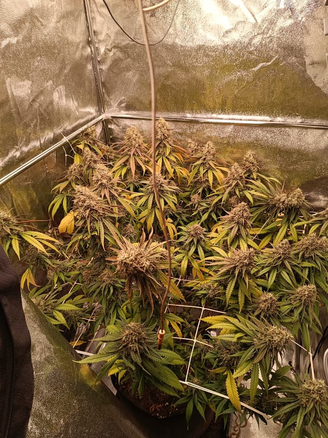 Das ist die unter der spider Farmer gewachsen.ist leider nicht ganz so gut gelaufen.aber bischen was wird's trotzdem geben