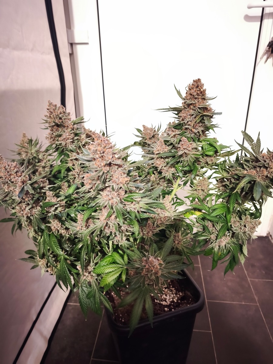 Gestern wurde ein letztes Mal gegossen,trichome sind gut milchig mit Nen bischen bernstein.ich lass die jetzt noch ne Woche stehen dann sollte das passen.