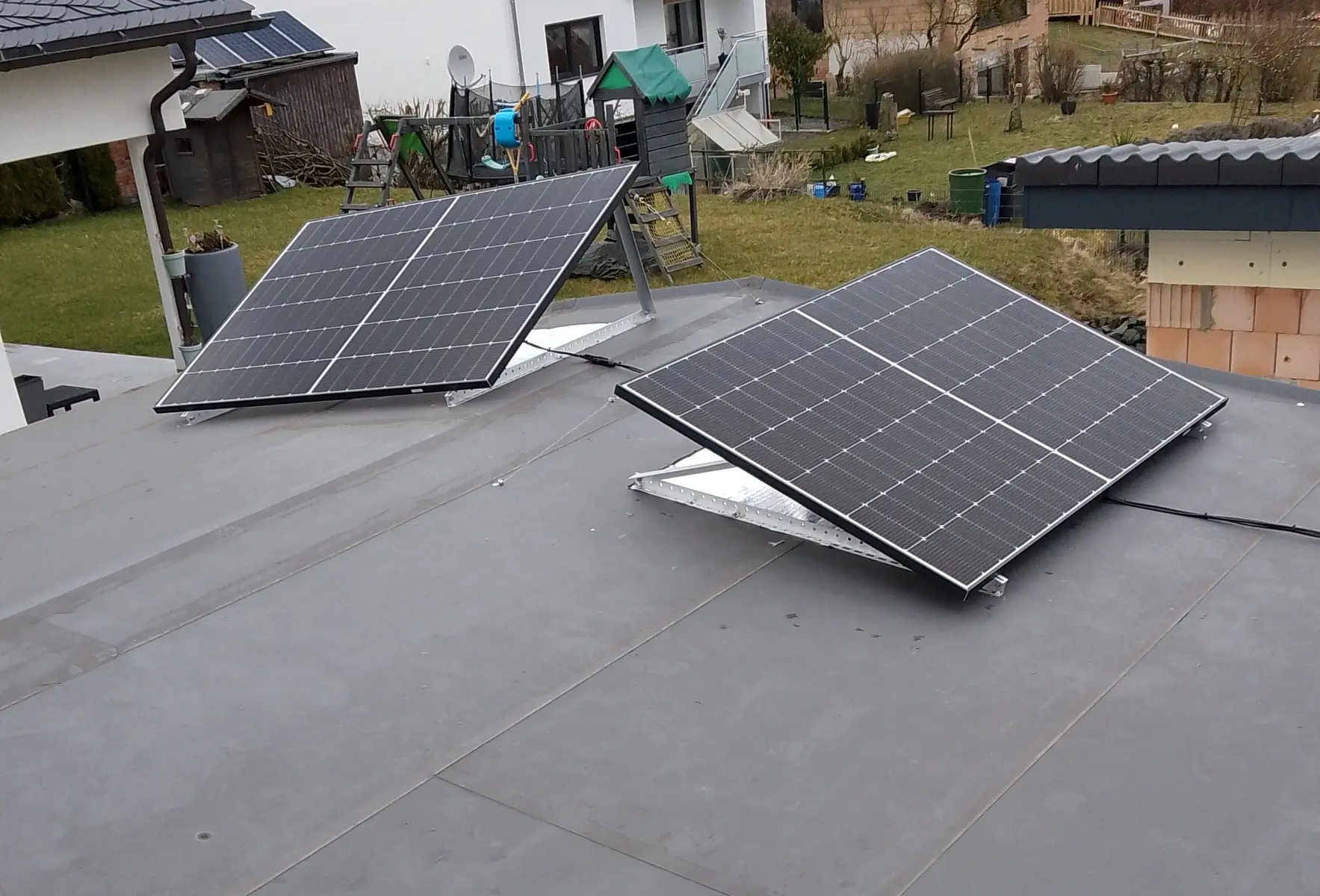 Normalerweise verschraubt man die nicht, um das Dach nicht undicht zu machen, sondern beschwert die mit enorm viel Gewicht, um die Dinger Sturmsicher zu machen.Hab auch welche auf der Garage und vl. machen die auch etwas mehr als die 800 Watt *hust.