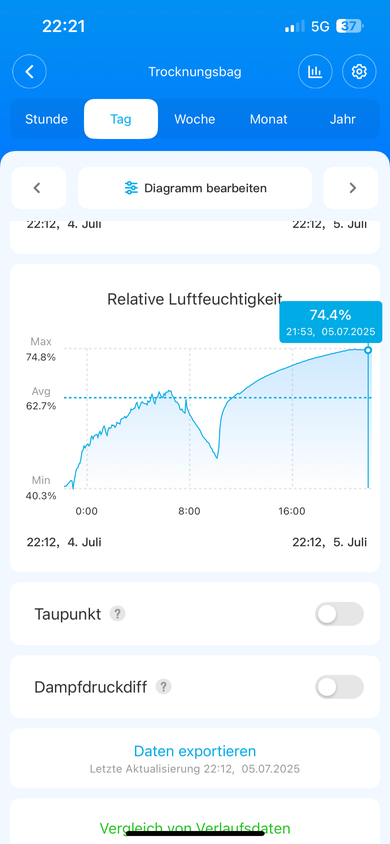 Guten Morgen ihr Lieben. Um 4 Uhr waren wir bei fast 80%. Also doch deutlich zu feucht.