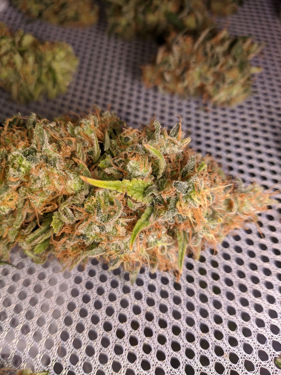 War erst die Nacht dazu gekommen, hab aber ganze Nacht im Trimjail verbracht und es ist nun vollbracht, Wettrim ist vollendet. Es gab 2x Schimmel, die leckersten Buds haben es aber geschafft. Für die Umluft bin ich sehr zufrieden mit dem Ergebnis. Hab es echt bereut die nicht gelollipopt zu haben, das ganze Popkorn war echt nervig, war aber dafür nen extrem entspannter Grow. Das Zeug ist so klebrig das es 1,1g Hand & Scherenhash wurde. Ich finde es außerdem sehr schön das die Wochenangabe hier stimmt, ich zähle ja ab 12/12 und es wurde 9-10 Wochen Blüte angegeben, in diesem Fall waren wir bei 9,5 Wochen.
