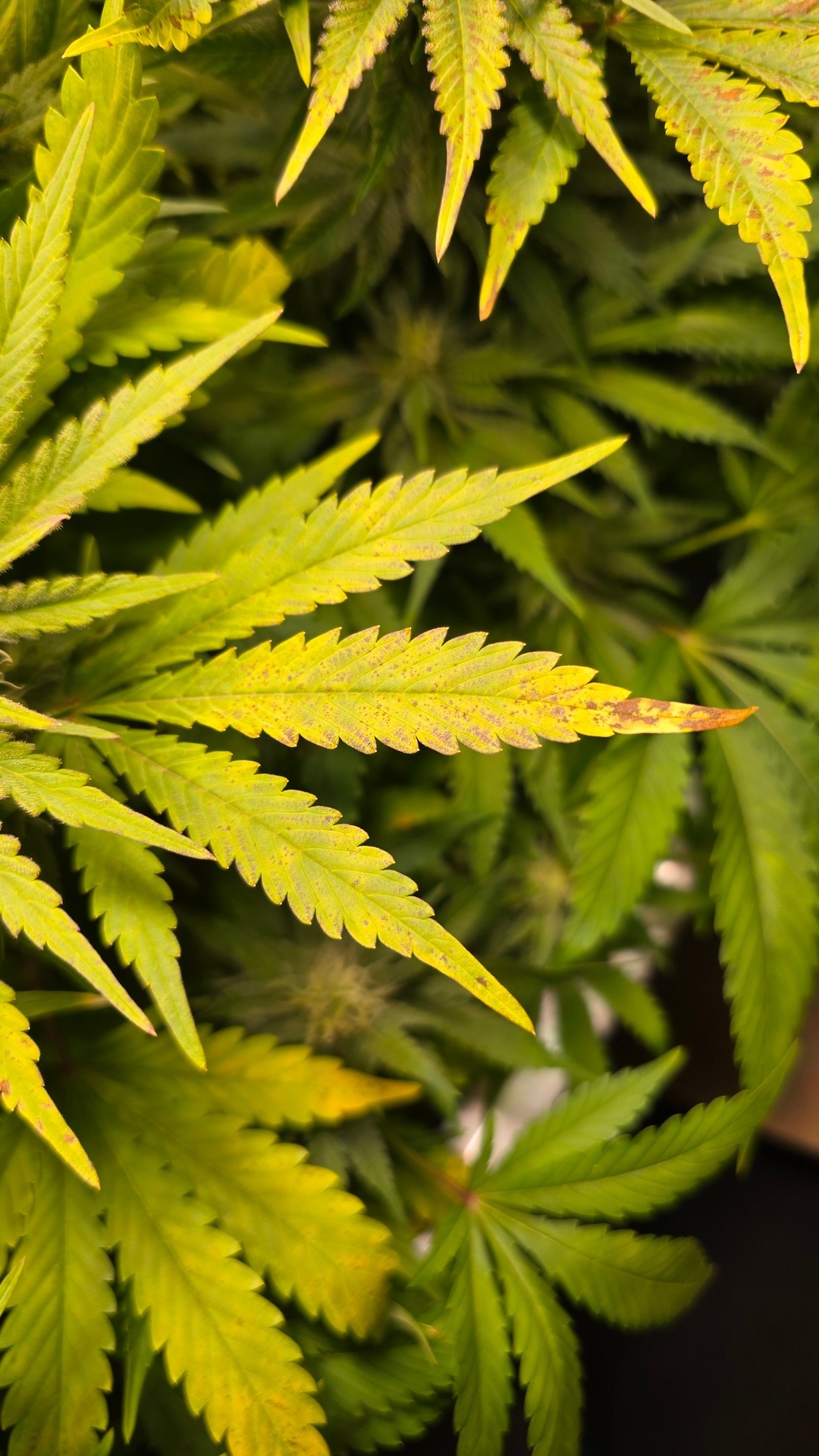 Und was ich so an Schaubilder gefunden habe kommt so Kalium oder Mangan mangel hin.