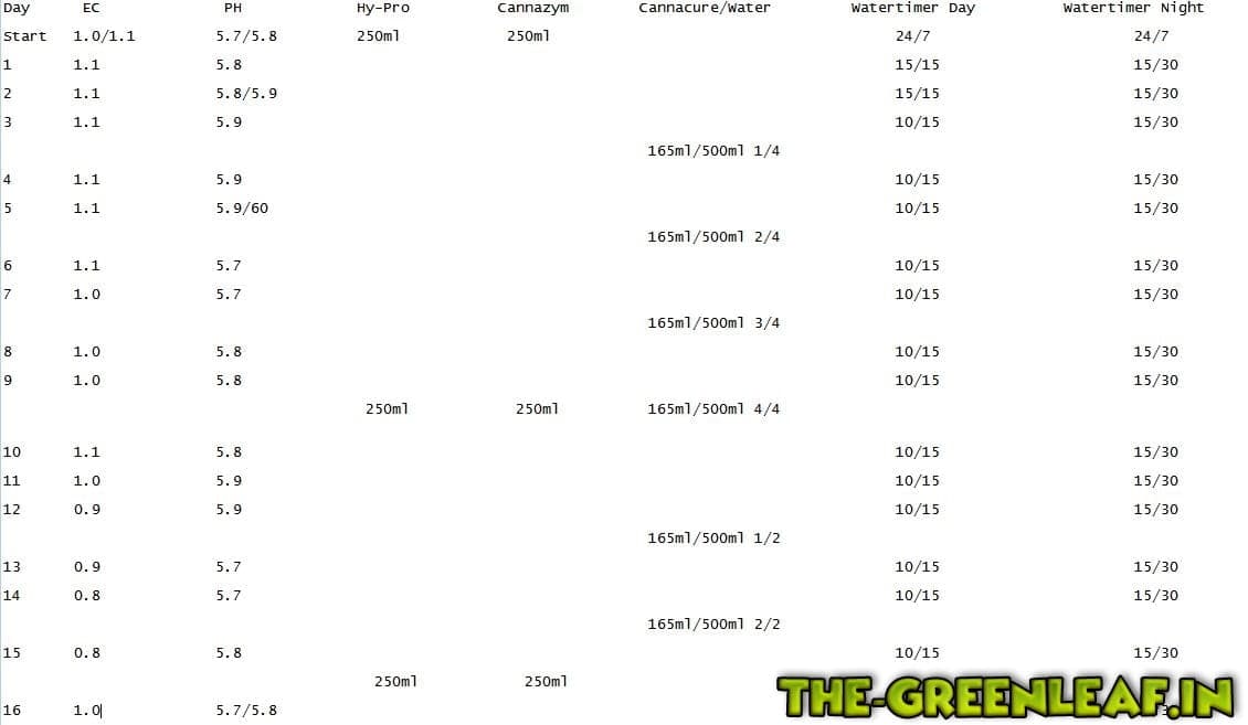 Im Laden werden von ca. 6 Monate alten Müttern die Clone geschnitten und spätestens 14 Tage später bekomme ich diese in kleinen Steinwollekeilen. Die sind dann normalerweise schon ziemlich gut angewurzelt im Keil. Die Mutterpflanze steht aber schon im Saft mit einem EC von 1.0 und daher bekommen deren Steckis dann auch schon bald diese Nährlösung. Kannstd auch hier