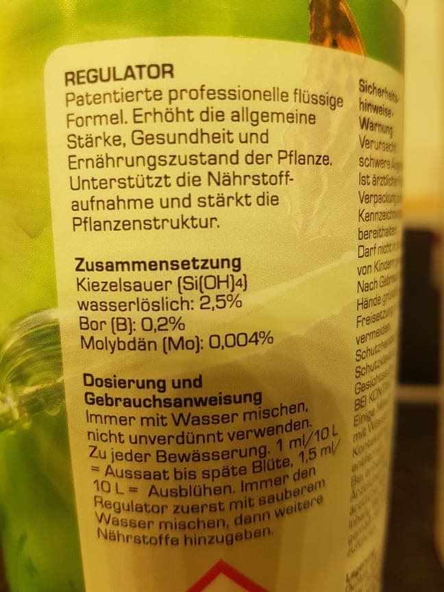 Mit doppelter Dosis Regulator kann man das Wachstum bremsen und sonst ist es ein richtiger Booster in alle Richtungen. Gib es auch in kleineren Flaschen...