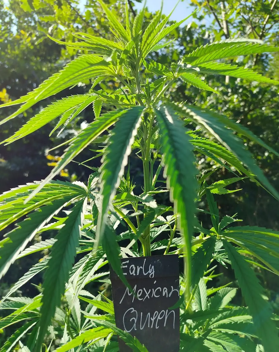 Fünf Early Mexican Queen stehen in der Pampa, zwei sind Männer, eine ist klein, weil sie schattig steht. Das waren sie vor 2 Wochen, die Erste ist glaube männlich. Early Mexican Queen ist die Mr.Nice Early Queen (die alte Early Pearl x Early Girl x Super Skunk) X Mexican Oaxacan.