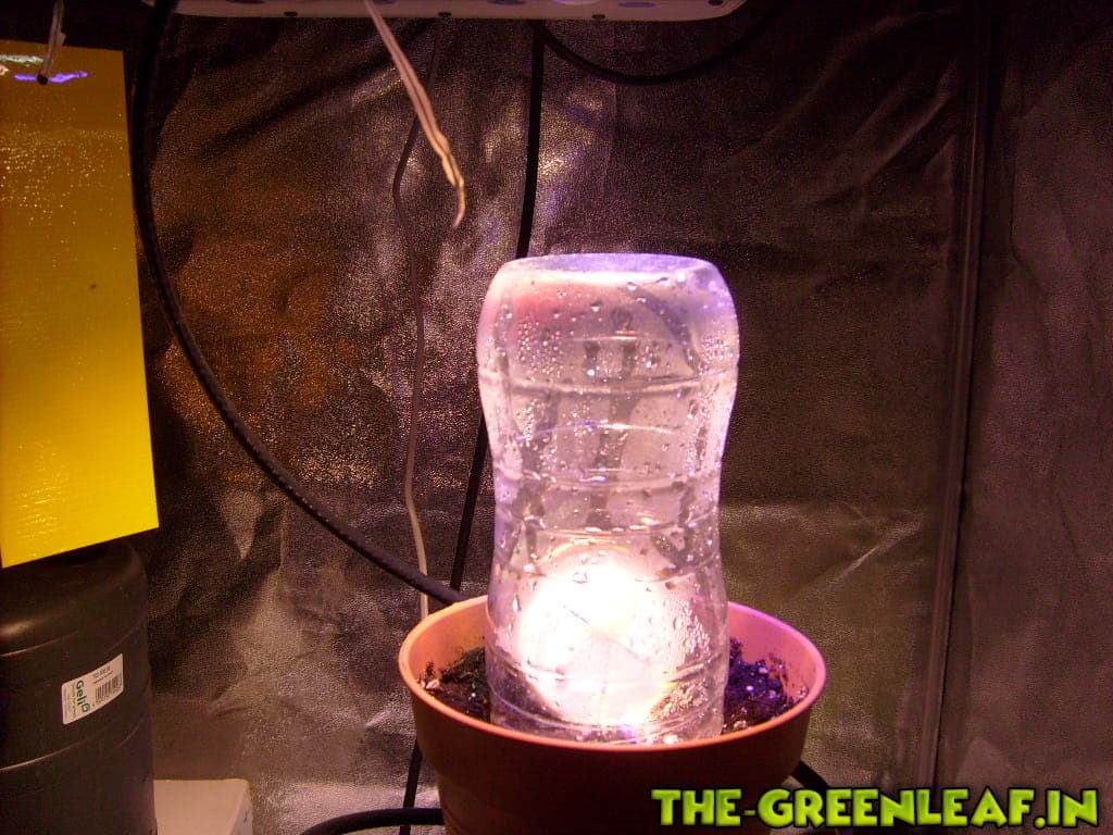 Drüber stöpen. Dann damit unter die Lampe.Fertig ist das DIY-Gewächshaus.