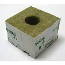 Steinwolle ist ein nährstoffarmes Anzuchtmedium, dass sich für die meisten Arten von Anbaukulturen eignet, was bedeutet, dass die Blöcke vor ihrer Nutzung mit pH-reguliertem Wasser befeuchtet werden müssen. Wenn sie sich einmal vollgesogen haben und wieder abgetropft sind, gibt man den Samen in das Loch und stopft dieses mit einer abgerissenen Ecke wieder zu. Dann stellen wir die Blöcke in das Mini-Gewächshaus unter die gewählte Lichtquelle und warten.