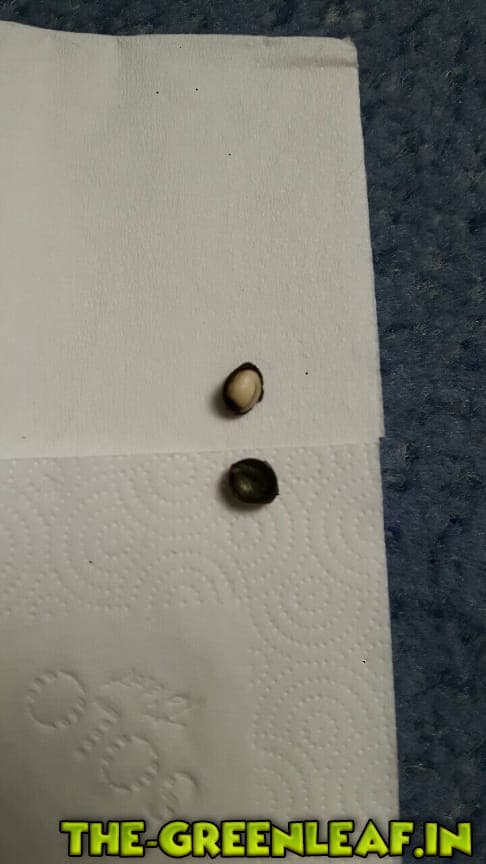 Die Keimrate war auch okay, 4/5 Seeds sind gekeimt. Einer jedoch leider nicht (ich glaube ihr könnt euch denken welcher dies war). Nach 3 Wochen habe ich es aufgegeben und dem "Riesenseed" seit gestern kein Wasser mehr gegeben. Jedoch hat es mich interessiert, wie so ein Samen von innen aussieht, und deshalb habe ich ihn eben aufgeschnitten. Die Hülle des Seeds ist an sich komplett schwarz, jedoch habe ich im Inneren des Seeds etwas entdeckt, was mich sehr überrascht hat. Die Pflanze/Der Keimling sah noch komplett gut aus und war nicht braun und abgestorben wie ich es erwartet habe. Er sah komplett lebendig aus, als würde er nur darauf warten, endlich das Tageslicht zu entdecken (Siehe Bild). Deswegen meine Frage an euch: Meint ihr, es lohnt sich noch, diesen Seed zum "keimen" zu bringen? Also noch versuchen, dass die Wurzel weiter wächst? Meine Vermutung ist nämlich, dass durch die Größe des Samens die Schale zu dick war, und daher keine Feuchtigkeit bis zum Kern durchgedrungen ist, und er daher natürlich auch nicht keimen konnte.