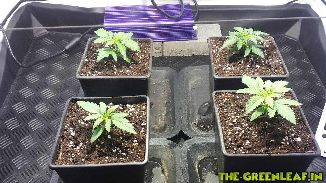 Die Damen wurden heute in ihre letzte Behausung (22L Root Pouch) mit AllMix verfrachtet. Beim Umtopfen habe ich die Vorblüte bei den hinteren zweien entdeckt. Sie bekommen jetzt noch eine Woche 18/6 und dann gehts in die Blüte.